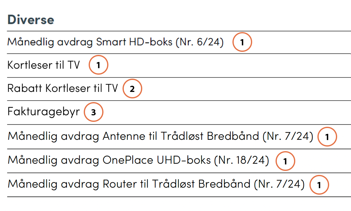 - Beløp viser det samlede beløpet du skal betale per kanalpakke eller tjeneste i denne faktureringsperioden.