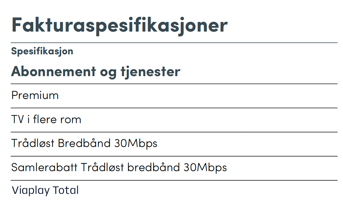 Her ser du hvilken faktureringsperiode du har og hvor mye kanalpakkene og tjenestene du abonnerer på koster per måned og per faktureringsperiode.
