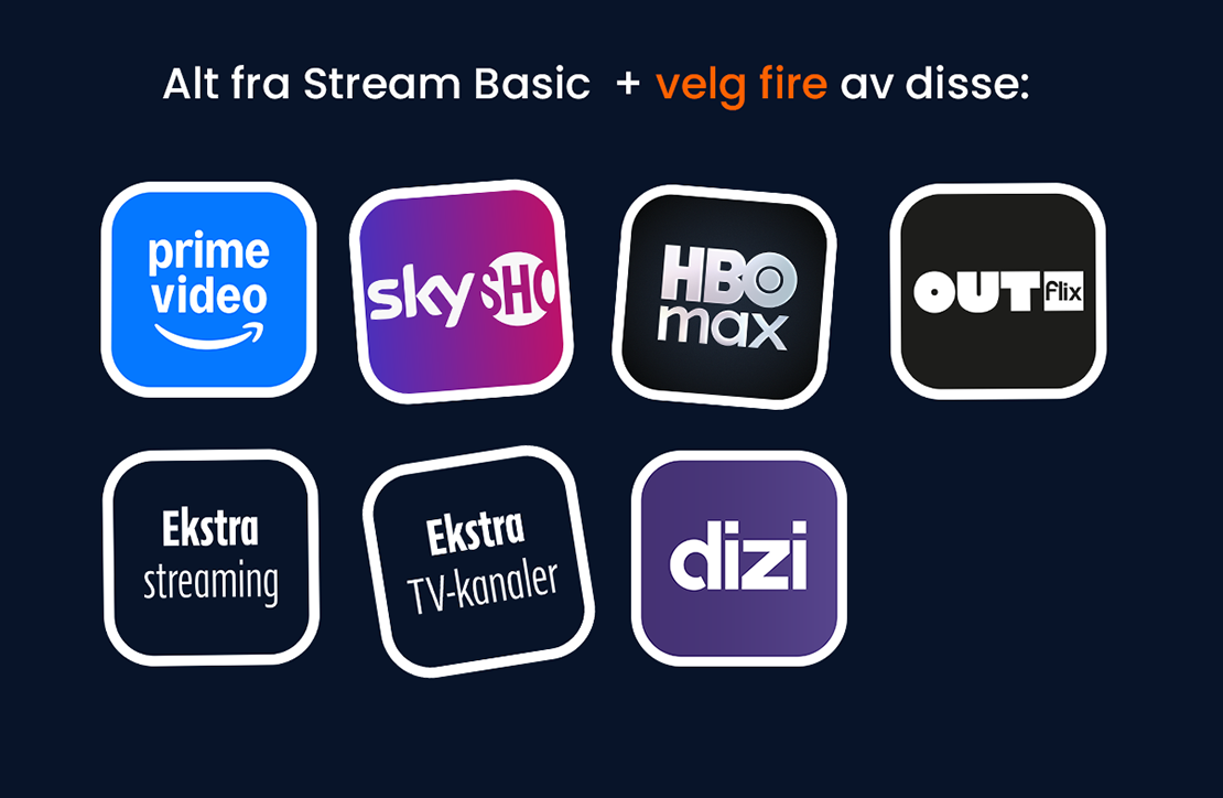Pakken inkluderer alt fra Stream Basic, samt valg av fire ekstra streamingtjenester eller ekstrapakker, som kan skiftes ut en gang i måneden.